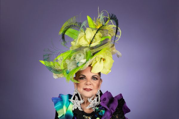 A one-of-a-kind luxury Derby headpiece by Attitudes by Angie, this statement Kentucky Derby hat is vibrant, fearless, and unforgettable for race day elegance.